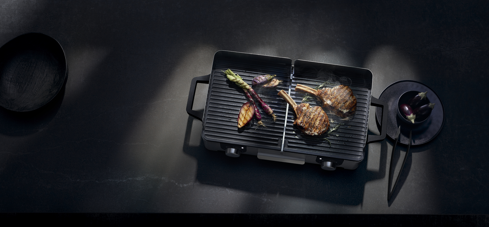 Eleganten zunanji žar Lono Master Grill se ponaša z ohišjem iz matiranega Cromargana in dvema ločenima žar ploščama, od katerih ima vsaka svojo lastno temperaturno regulacijo. Tako vam ni več treba skrbeti, katero živilo najprej speči! Žar je namenjen zunanji uporabi, saj ima vključeno snemljivo zaščito pred škropljenjem in vetrom. Po končani peki lahko plošči in odstranljiv predal za odtekanje maščobe preprosto operete v pomivalnem stroju.