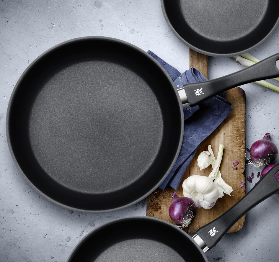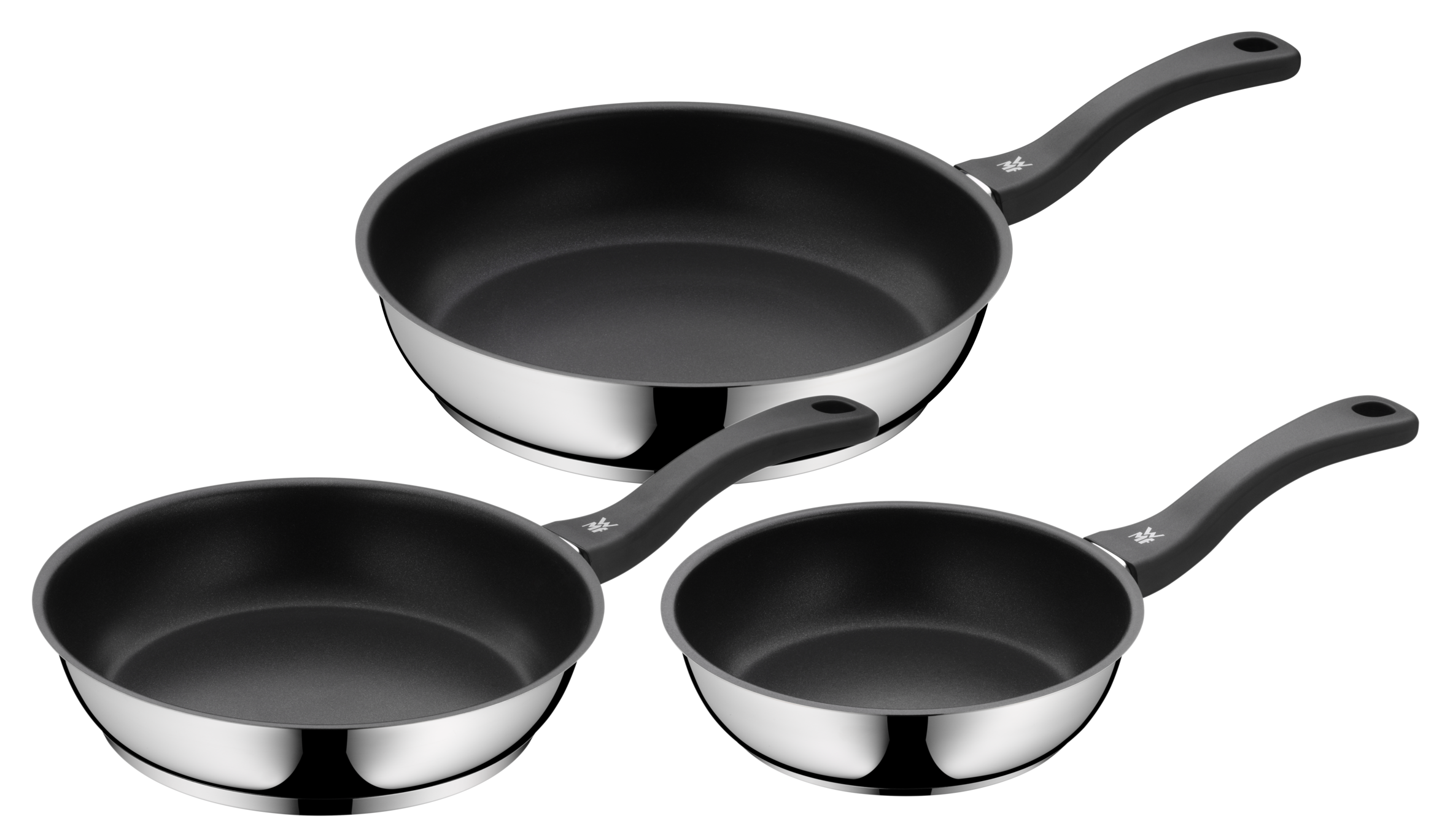 WMF set Devil - primeren za vse vrste kuhališč, vključno z indukcijo. Posebnost je TransTherm-Allherdboden patentirana talna konstrukcija, ki zagotavlja enakomerno distribucijo toplote in daljše shranjevanjem toplote za energetsko učinkovito kuhanje. Ponve so izdelane iz Cromargan poliranega nerjavečega jekla 18/10, priporočeno je ročno pranje. Set sestavljajo: 3 ponve različnih velikosti in kapacitet (20/24/28 cm), ki so izredno odporne na vročino do 400°C.