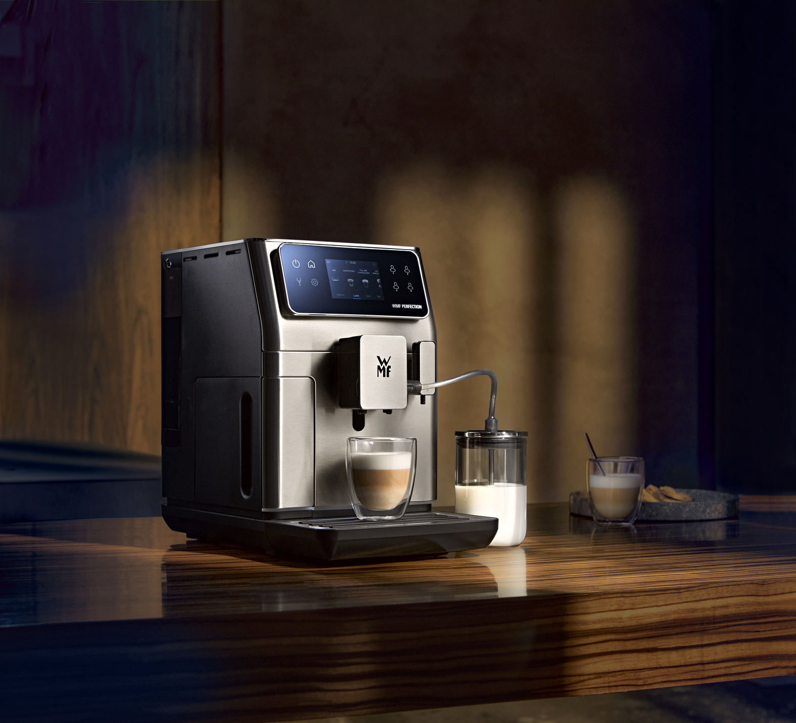 Popolnoma avtomatski kavni aparat z neodvisnim termoblokom za toplo vodo in mleko, za popolno mlečno peno in okusne kave na mlečni osnovi