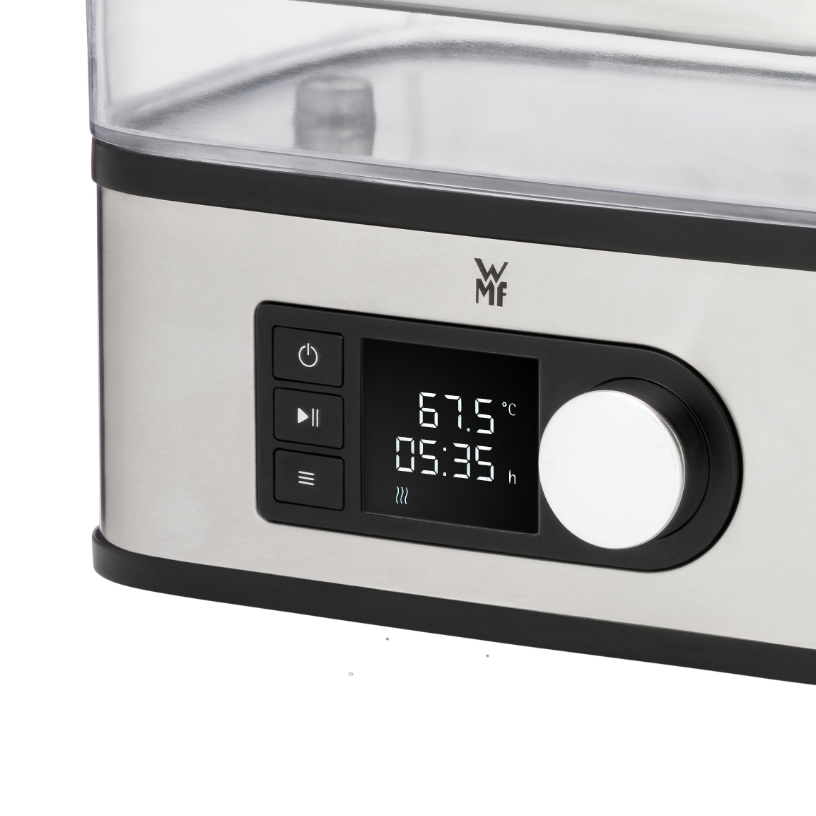 Priznana nemška znamka WMF ponuja gurmanske kakovostne, funkcionalne in lepo izdelane izdelke, ki izpolnjujejo tudi najstrožje standarde oblikovanja. WMF predstavlja že več kot 160 let močno tradicijo v svetu kulinarike. Podjetje s svojimi novostmi postavlja standarde na mednarodnem prostoru in je pomemben vir navdiha na trgu. Parni kuhalnik WMF Lono Sous vide cooker pro za pripravo mesa, rib in zelenjave. Opremljen z dvema bistvenima funkcijama gurmanske kuhinje: enkrat za kuhanje Sous-vide sta potrebna natančna nastavitev temperature in visoka temperaturna natančnost. Imate možnost, da napravo uporabite za vedno bolj priljubljeno počasno kuhanje. Spremenljivo uravnavanje temperature omogoča razpon od 35°C do 90°C, timer deluje do 72 ur nežen čas kuhanja. Zahvaljujoč enostavnemu rokovanju z WMF, 6-litrski rezervoar za vodo iz Titana brez BPA. Delovanje prek vrtljivega gumba je tudi priročen in enostavno berljiv LC-zaslon. Dva prosto nastavljiva programa zagotavljata popolno kuhanja v vsakem trenutku. Elegantno ohišje in 3 litrski počasi vstavljeni kuhalnik sta narejeni iz visokokakovostnega Cromargan.